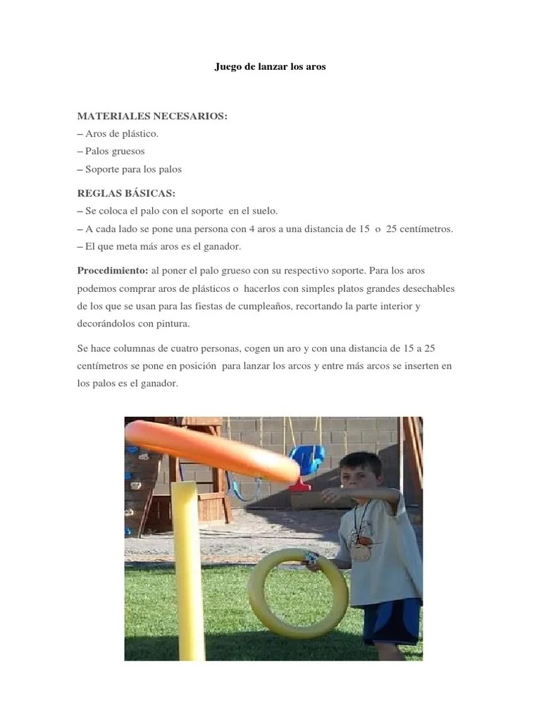 Y al final, bien con un palo, bien doblando la varilla sobre sí misma se hacía un agarradero para que encajase mejor en la mano. Un aro es un juguete en forma de circunferencia que los niños usan para jugar, por ejemplo haciéndolo rodar con un palo intentando que no caiga, . Juego de lanzar los aros · juego reciclado de encestar aros materiales necesarios: Toyandona 1 juego de anillo de lúpulo con 10 aros y 10 conectores de juguetes exteriores.
